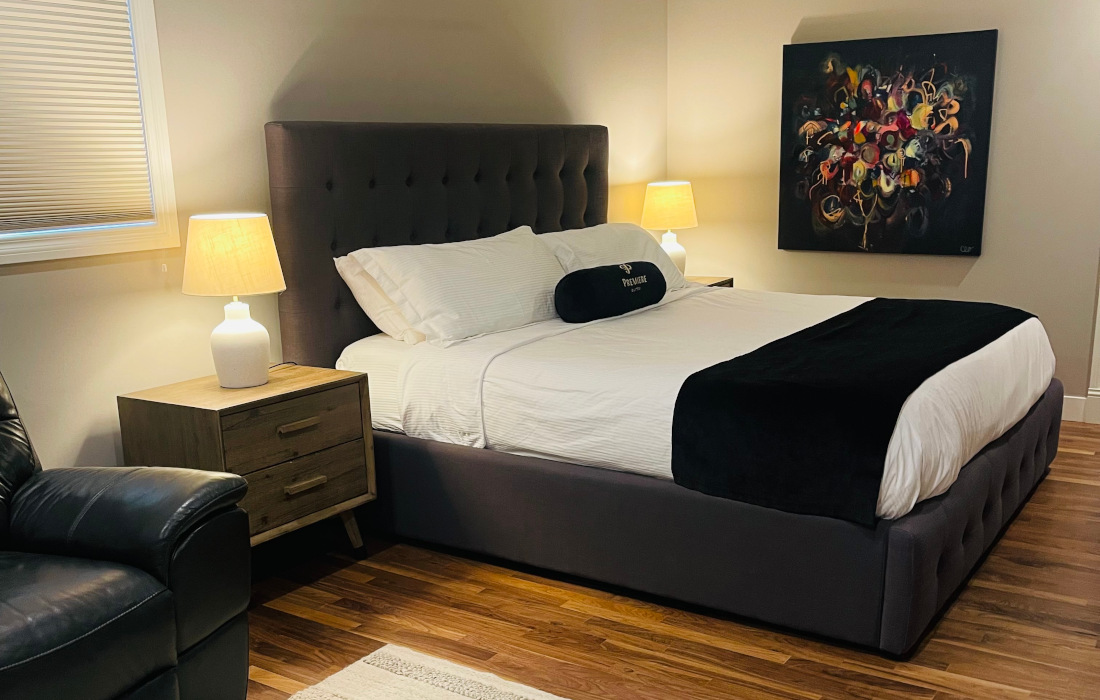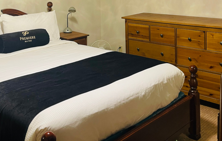 Premiere Suites offers comfortable and welcoming furnished accommodations, which provides our guests with peace of mind the moment they arrive. We know there is nothing like home, but we strive to offer you the very best next thing. We provide high quality bedding, linens, and towels, as well as housewares such as an ironing board, iron, fan, hair dryer and laundry baskets. All suites have in-suite washer/dryer and kitchens with full sized appliances. Coffee maker, toaster, blender and all crockery, cutlery, glassware, and cookware are also included. Suites are equipped with cable services, wireless high-speed internet, and an in-suite phone with voicemail and caller ID. We provide for your immediate comfort a coffee/tea welcome kit, handmade soap bar and detergent/dishwasher starter kits. During your stay we are able to assist with any special requests to ensure your complete comfort.