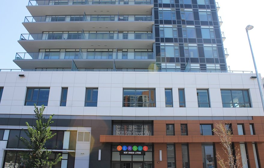 These one and two bedroom suites feature fully equipped kitchens with polished quartz counter-tops, sleek and modern soft-closing cabinets, with chrome handles and faucets. Versus Living exemplifies contemporary urban style with the added vinyl plank flooring and the stainless-steel Whirlpool appliances. Bathrooms boast mosaic tile back-splashes and a mirrored vanity that also provides amble storage. The abundance of natural light, shining through the suite can brighten anyone's day. A LEED (Leadership in Energy and Environmental Design) certified property, the building itself features a fitness centre and yoga studio, meeting room, media lounge, games area, and a landscaped courtyard with BBQ. This location has truly something for everyone.