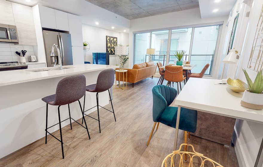 The Crane Premiere Suites is thrilled to offer walk-in ready, fully furnished short-term apartment rentals at The Crane. Our executive apartment rentals feature two bedrooms; two bathrooms; fully equipped contemporary kitchen with 4 appliances (fridge, stove, dishwasher, and microwave); in suite laundry; some with private balcony; roof-top patio with barbeque; and much, much more.
