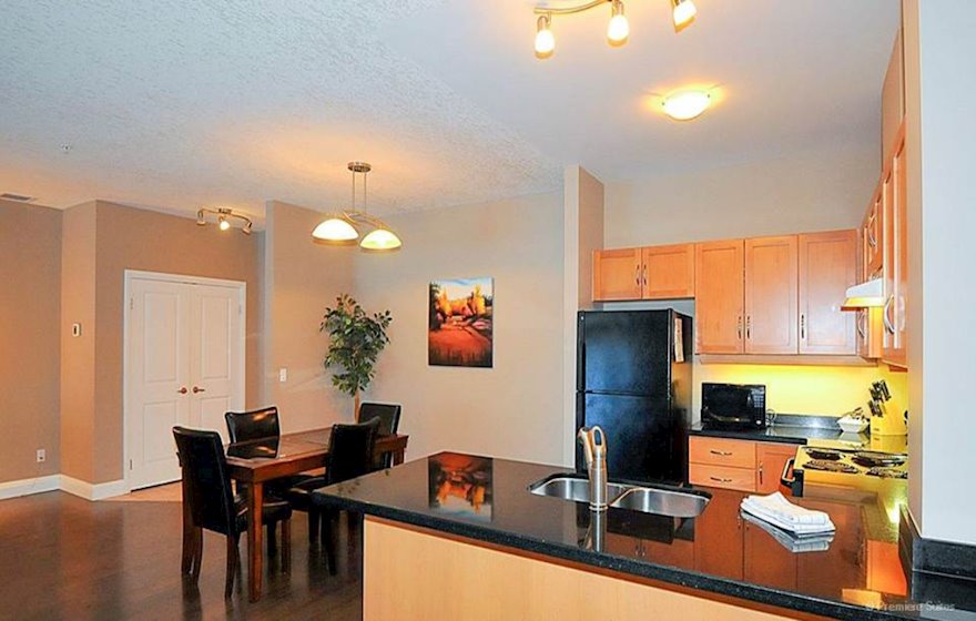 The Market Lofts is a new condominium building located in downtown Kitchener and is steps away from the famous Kitchener Farmer’s Market. This stunning condominium offers one, one plus den, and two bedroom executive suites ranging from 900 to 1200 square feet. All executive suites are tastefully furnished apartments with alluring décor. All suites are fully serviced apartments (bi-weekly) complete with bedding and linens. With an open concept you’ll feel right at home at the Market Lofts. Enjoy the fully equipped kitchen or dine at one of the many nearby fine dining establishments. The Market Lofts is pet friendly.