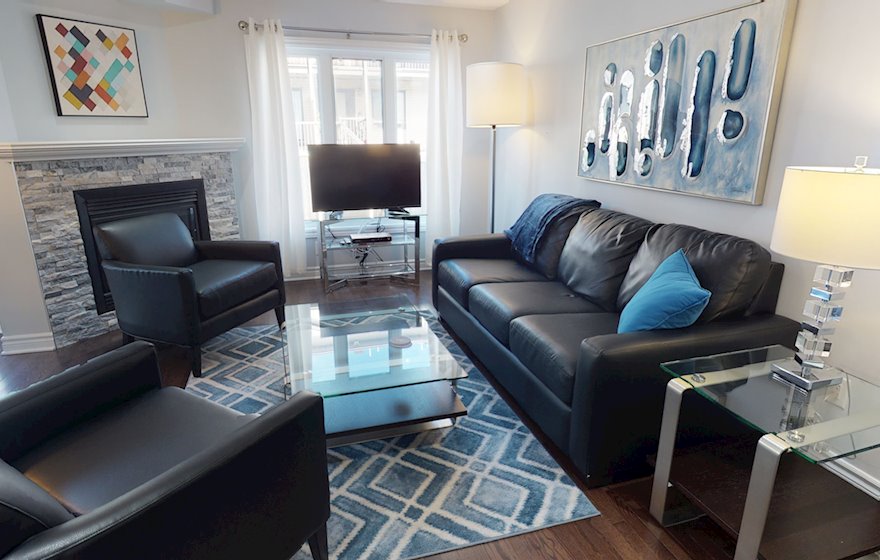 This beautiful 3-bedroom home is situated in the Avalon West community in Orleans within walking distance to bike paths, dog parks, public transportation, grocery stores and restaurants. Take a walk in this quiet family-oriented neighbourhood and enjoy the greenery. Your short-term accommodations at Orleans South features a bright and open concept kitchen and a large dining space. Enjoy the sun with your morning coffee on the large desk and lovely garden space. Gather around the cozy gas fireplace in the evenings after a long day at the office. A perfect location, and a short drive to downtown Ottawa.