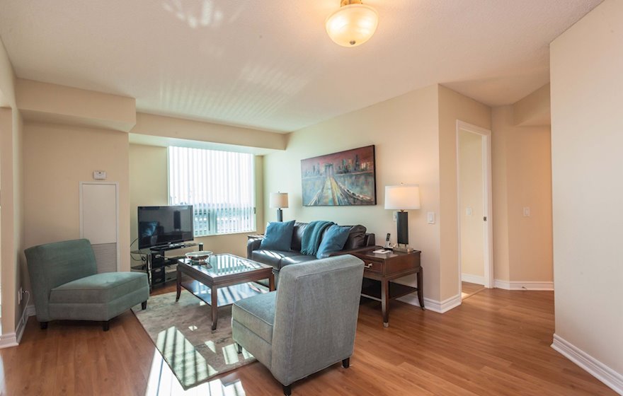 360° at the City Centre is an impressive condominium property in a fantastic central Scarborough location. This executive furnished two bedroom suite offer extended stay for anyone travelling for work, relocating their family or taking a holiday. The luxury finishes including granite countertops, tiled backsplash and marble vanities. Enjoy and take in the picturesque city view on your own private balcony while sipping your morning coffee or after a long day out. Guests also have access to fitness facility with an indoor pool, whirlpool, sauna, multipurpose entertainment room and so much more. You will be steps from the well-known shopping mall at Scarborough Town Centre, close to Scarborough Rapid Transit station, TTC and Highway 401. Everything at your door step for all your short-term needs at Premiere Suites.