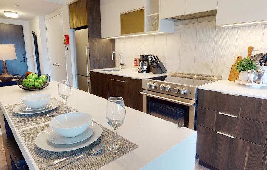 Experience the extraordinary extended-stay suites at FourFifty The Well, boasting exquisite modern finishes and unique city views. Each suite features high-quality stainless-steel appliances, ensuring both energy efficiency and style. The bathrooms are elegantly designed and offer either walk-in showers or a relaxing soaker tub. Immerse yourself in luxury living at FourFifty The Well, where contemporary design, unparalleled community amenities, and exceptional suite features come together to create an authentic downtown Toronto lifestyle experience.