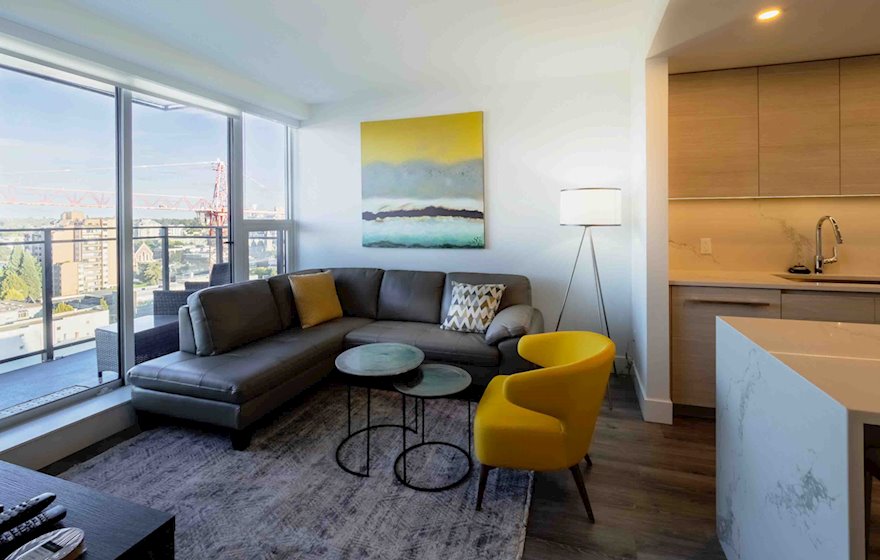 The suites in the Hudson Place One are beautifully designed and decorated. Large bright windows and an open floor plan create the perfect environment to entertain guests or spend a nice evening in.